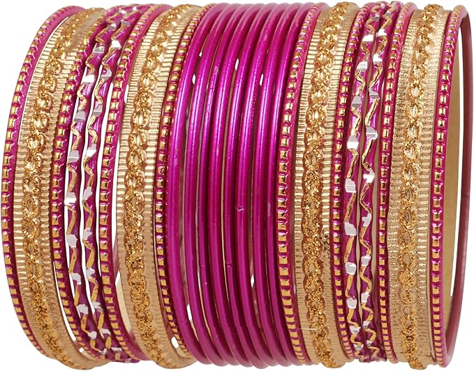 24 pieces Fuchsia/Golden bangles