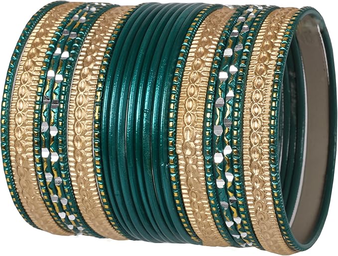 24 pieces Dark Green/Golden bangles